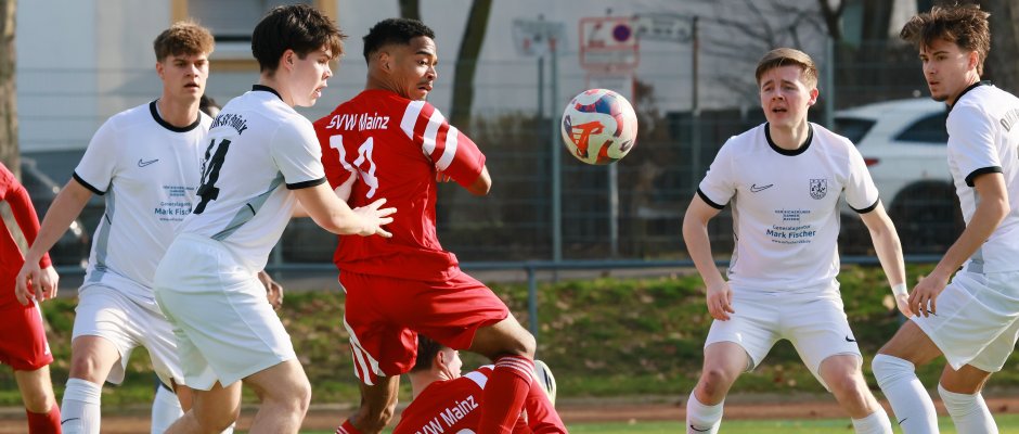 Fußball (Amateure) Keine Niederlage zum bange werden Oberliga | Guido Steinacker | 08.03.2026 Zum Auftakt in die Restsaison kassiert Oberligist SV Gonsenheim bem FC Emmelshausen-Karbach eine 0:2 (0:0)-Niederlage. Die Gegentreffer fallen direkt vor der Pause und nach Wiederbeginn. Zum Artikel